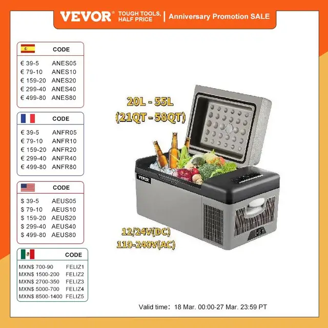 - VEVOR 제품은 12/24V DC와 110-240V AC에서 작동하며, 차량용 라이터나 가정용 전원에 연결하여 사용할 수 있습니다.